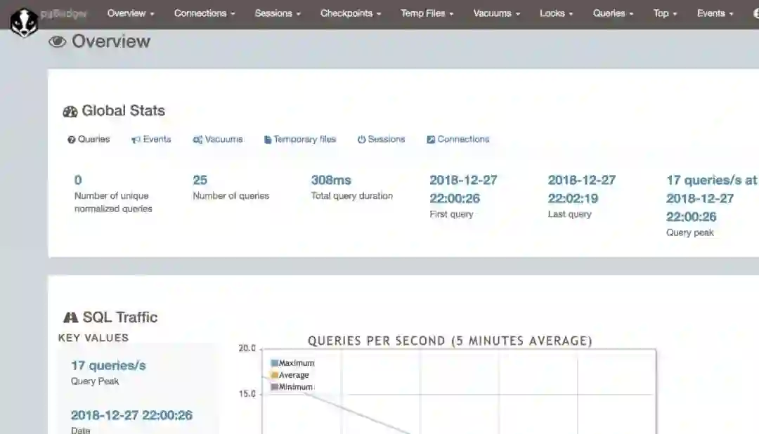 该报告将汇总数据,并提供有关 Postgres 所做工作的大量信息。你可以找到关于错误、最慢查询、等待最长查询、获取的锁类型、临时文件是否用于排序、检查点运行的频率、真空运行的频率以及其他类似信息。有了这些数据,你就可以识别和修复运行缓慢的查询,并通过调优提高 Postgres 的性能。