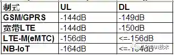 根据3GPP标准定义,不同网络下的MCL要求如下表所示。从表中可见,各制式下覆盖的瓶颈均在上行,其中NB-IoT的上行MCL为-164dBm,而GSM、宽带LTE网络的上行MCL为-144dBm,因此20dB的增益是相比GSM和现有LTE网络而言的。
