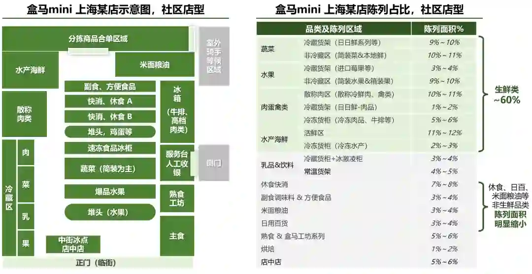 图8:盒马mini上海某店的布局和陈列占比,2021