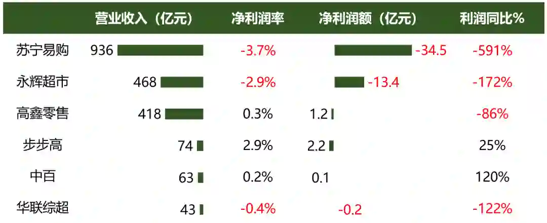 图1:国内典型零售上市公司业绩,2021H1