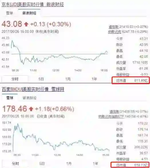 市值迅猛增长的京东,与百度的市值最近的时候只差1%,所以国内好多人觉得国内的互联网行业要变天了,BAT变身ATJ 。