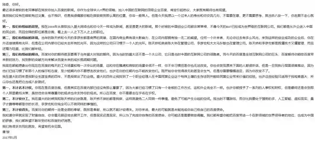 也许,就像李彦宏和陆奇声明的那样,他的离开是因为个人和家庭原因。