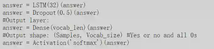 最后,添加模型的其余层,添加LSTM层(而不是文中的RNN),dropout层和最终的softmax来计算输出。