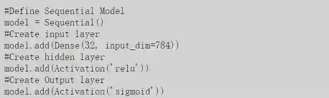 使用Keras,我们可以创建表示不同的层,也可以轻松定义这些数学运算和层中的节点数。这些不同的层用一行代码就能创建完成。