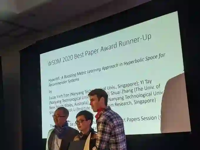 【导读】WSDM 2020全称为第13届国际互联网搜索与数据挖掘会议(The 13thInternational Conference on Web Search and Data Mining, WSDM 2020),将于2020年2月3日-2月7日在美国休斯敦召开。WSDM是CCF推荐的B类国际学术会议,由SIGIR、SIGKDD、SIGMOD和SIGWEB四个专委会协调筹办,在互联网搜索、数据挖掘领域享有较高学术声誉。这次会议共收到来自615篇长文投稿,仅有91篇长文被录用,录用率约15%。大会公布了最佳论文系列奖项,最佳论文由加利福尼亚大学圣克鲁兹分校(University of California, Santa Cruz,简称UCSC)获得-主轴的幂用于精确团计数,最佳论文亚军(Runner Up)论文由双曲度量学习由新加坡南洋理工获得-双曲度量学习。