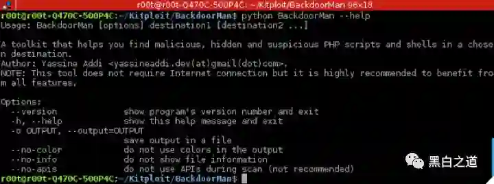 BackdoorMan是一款采用Python语言开发的开源工具,它可以帮助你找出系统中的恶意文件、隐藏的PHP脚本以及可疑的Shell脚本。你可以在BackdoorMan中指定一个扫描路径,它会自动检测该目录中是否存在上述可疑文件。
