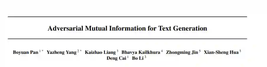 在最大化源与目标之间的互信息方面的最新进展已经证明了它在文本生成方面的有效性。然而,以往的工作对MI(即MI)的后向网络建模关注较少。这对于变分信息最大化下界的紧密性至关重要。在本文中,我们提出了一个对抗互信息(AMI):一个文本生成框架,它是一个新的鞍点(min-max)优化,旨在识别源与目标之间的联合交互。在这个框架中,通过比较真实和合成的数据分布,前向网络和后向网络能够迭代地提升或降级彼此生成的实例。我们还开发了一个潜在噪声采样策略,利用高级语义空间的随机变化来增强生成过程中的长期依赖性。基于不同文本生成任务的大量实验表明,所提出的AMI框架能够显著优于多个强基线,我们还表明,AMI有可能为变分信息最大化问题带来更紧密的互信息上限。