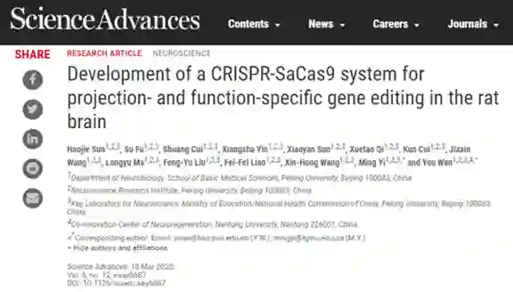 《CRISPR-SaCas9系统的开发,用于在大鼠大脑中进行投影和功能特定的基因编辑》