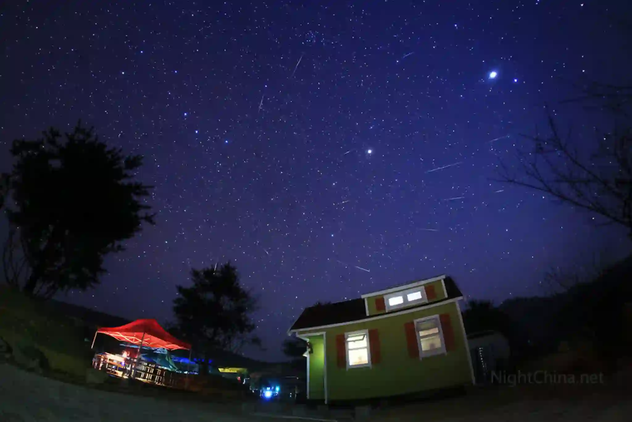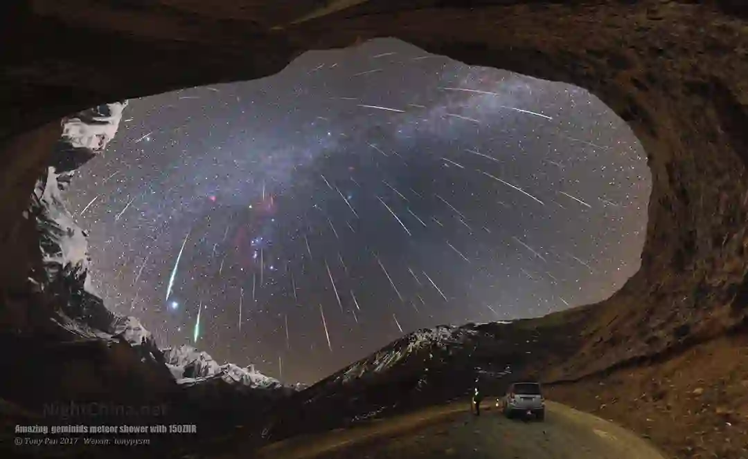 2017年的双子座流星雨,由潘杨拍摄,图片源自夜空中国。