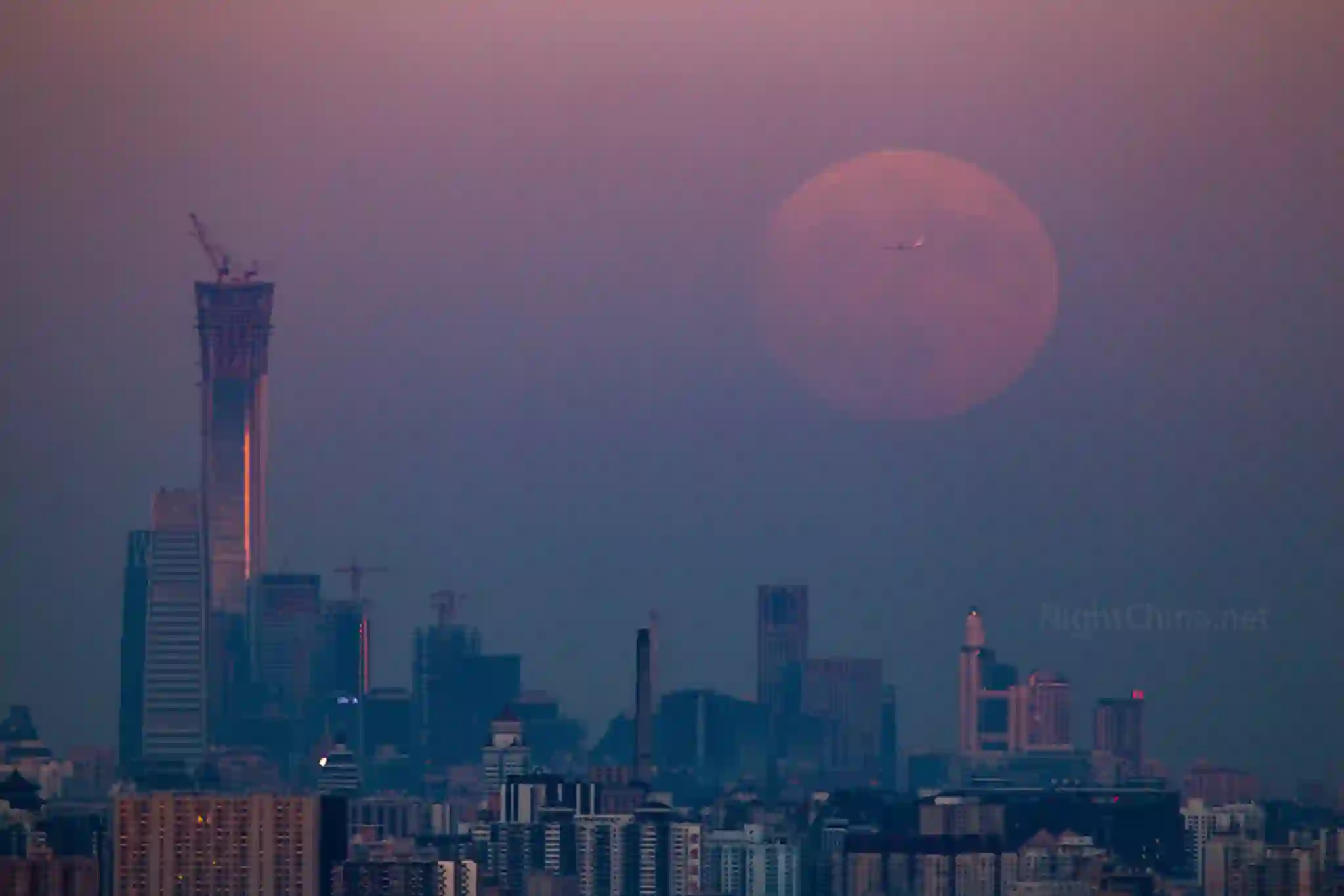 2017年11月3日的满月初升,由赵忠华拍摄,图片源自夜空中国。