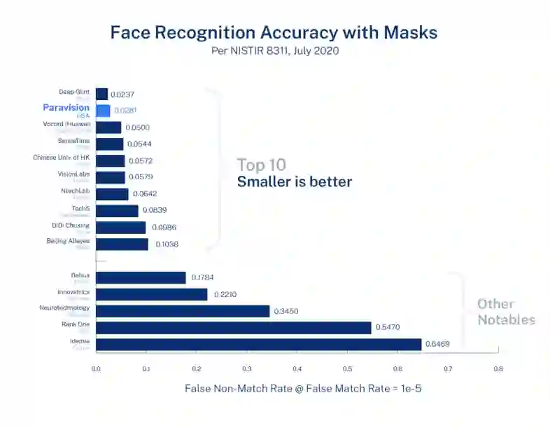 在应用关闭之前的一个月,Paravision 还在推销自己的产品,声称其开发的口罩人脸识别算法在美国国家标准技术研究所(NIST)的人脸识别算法测试(FRVT)中获得了准确率第二的好成绩。