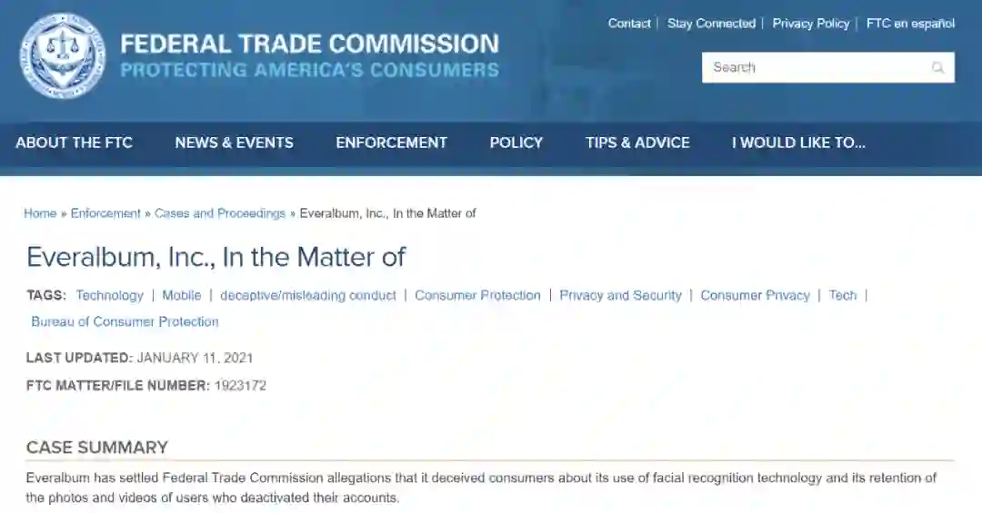 媒体的曝光也引起了 FTC 的关注。经过一段时间的审查,FTC 公布了对于 Everalbum 的最终处理结果。