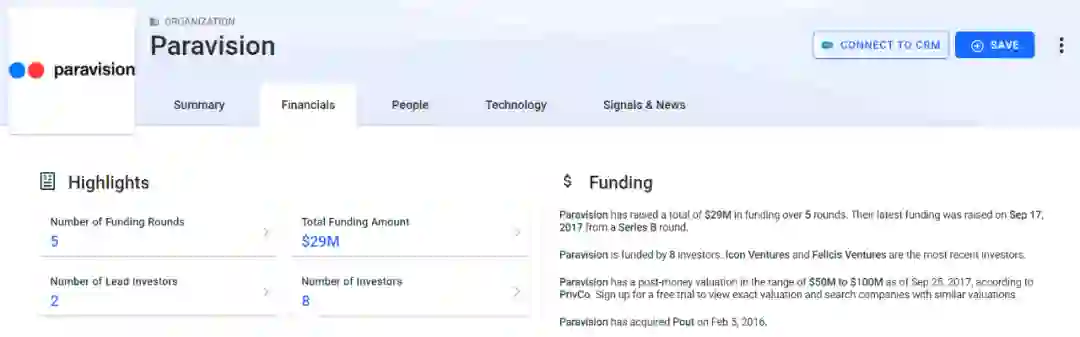 除了人脸识别解决方案,该公司还提供一系列活动识别工具。知名科技媒体 techcrunch 曾表示,「虽然面向消费者的应用已经关闭,但公司的业务似乎还在继续」。而且,这部分业务还相当成功。Crunchbase 数据库的资料显示,Paravision 成立至今已经进行了 5 论融资,融资额高达 2900 万美元。