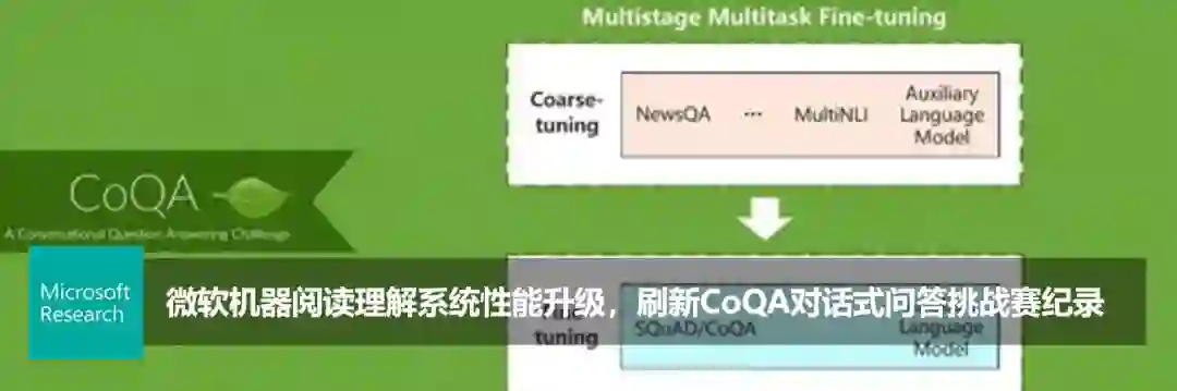 微软亚洲研究院在 SQuAD 和 CoQA 两大数据集上均取得了突破性领先的成绩,继2018年1月首次在机器阅读理解挑战赛 SQuAD 中率先超越人类水平后,又于2019年3月首次在对话式问答挑战赛 CoQA 中使各项指标超越人类水准。