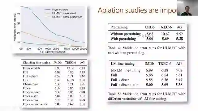 迁移学习在计算机视觉领域做出了许多革命性的成果,但是直到现在却没有在NLP领域有重要的应用(在某种程度上可以说是被忽略了)。在这节课上,我们会展示如何预训练一个全语言的模型,能超越此前基于简单词向量的方法。我们将把这一语言模型看作是文本分类的最新成果。