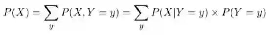 这个大写的"Σ"把所有一切相加的偷懒写法,它下面的“y”告诉我们应该把什么相加起来。所以这个等式意思是说“如果你想要得到X(等式左边)的边缘概率,那么你需要对变量Y的每一个可能的结果来计算X和Y的联合概率值。”