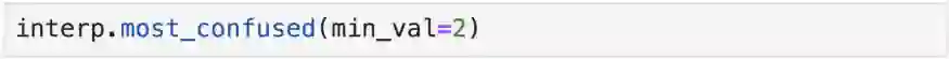 most_confused只突出显示预测分类和实际类别中最混乱的组合,换句话说,就是分类最常出错的那些组合。从图中可以看到,模型经常将斯塔福郡斗牛犬错误分类为美国斗牛犬,它们实际上看起来非常像。