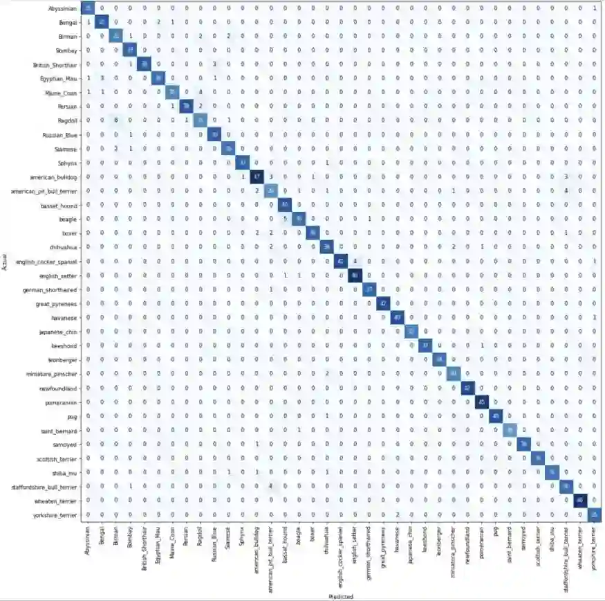 ['Abyssinian', 'Bengal', 'Birman', 'Bombay', 'British_Shorthair', 'Egyptian_Mau', 'Maine_Coon', 'Persian', 'Ragdoll', 'Russian_Blue', 'Siamese', 'Sphynx', 'american_bulldog', 'american_pit_bull_terrier', 'basset_hound', 'beagle','boxer', 'chihuahua', 'english_cocker_spaniel', 'english_setter', 'german_shorthaired', 'great_pyrenees', 'havanese', 'japanese_chin', 'keeshond', 'leonberger', 'miniature_pinscher', 'newfoundland', 'pomeranian', 'pug', 'saint_bernard', 'samoyed', 'scottish_terrier', 'shiba_inu', 'staffordshire_bull_terrier', 'wheaten_terrier', 'yorkshire_terrier']
