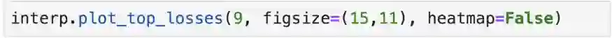 plot_top_losses显示最高损失的图像及其:预测标签/实际标签/损失/实际图像类别的概率