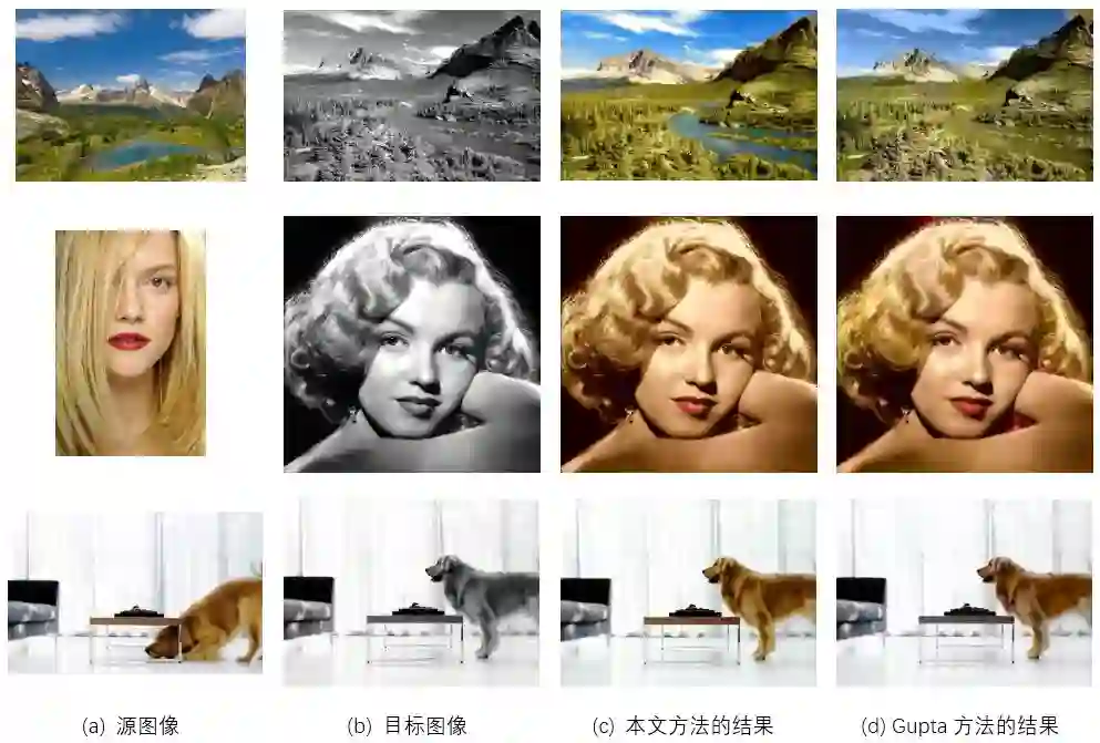 迁移过程中考虑局部邻域像素信息,自动调节领域像素权重,使得颜色正确迁移的同时保证清晰的边界信息。