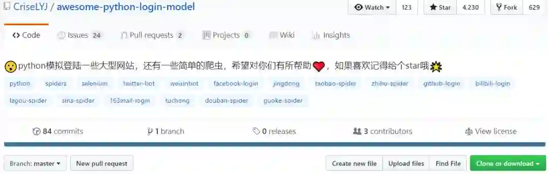 目前该项目已经获得 6732 个Star,1127 个Fork(GitHub地址:https://github.com/CriseLYJ/awesome-python-login-model)