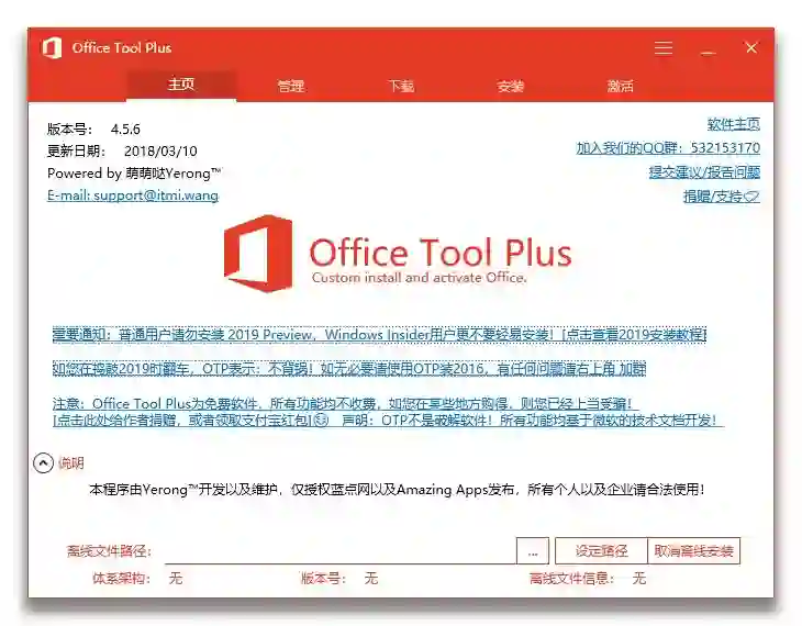 微软提供的官方部署工具让普通用户对自定义部署 Office 望而怯步,这款实用的工具却让用户能够快捷简单的进行管理。有趣的是本工具的开发者 Yerong 还是一个高中生,他利用课余时间制作这款工具,来让更多用户能够轻松管理 Office 套件。喜欢这款工具的朋友可以去软件官网支持开发者的工作。