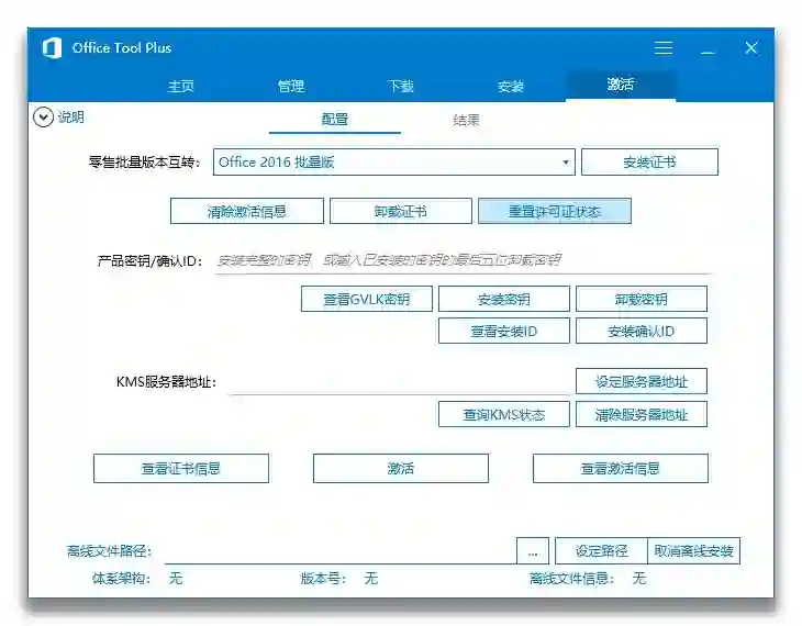 通过 OTP,你可以查看当前电脑中安装的 Office 的信息,配置当前 Office 的更新。还可以一次性卸载多个版本的 Office,删除某个语言包。
