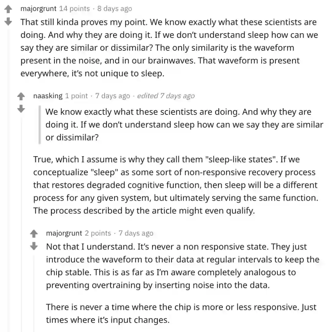[3]https://www.reddit.com/r/science/comments/gzxi3w/artificial_brains_may_need_sleep_too_neural/ftk3h1p/