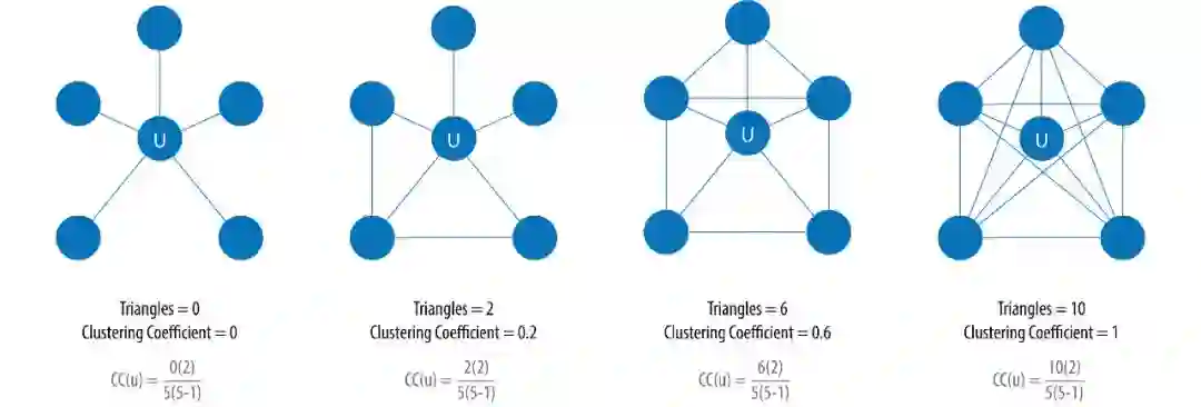 有两种聚类系数:局部聚类系数(Local Clustering Coefficient)和全局聚类系数(Global Clustering Coefficient)。