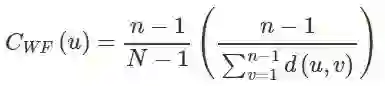 Wasserman and Faust 提出过另一种计算紧密性中心性的公式,专门用于包含多个子图并且子图间不相连接的非连通图:
