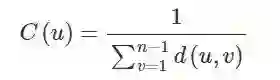 对于一个节点来说,紧密性中心性是节点到所有其他节点的最小距离和的倒数: