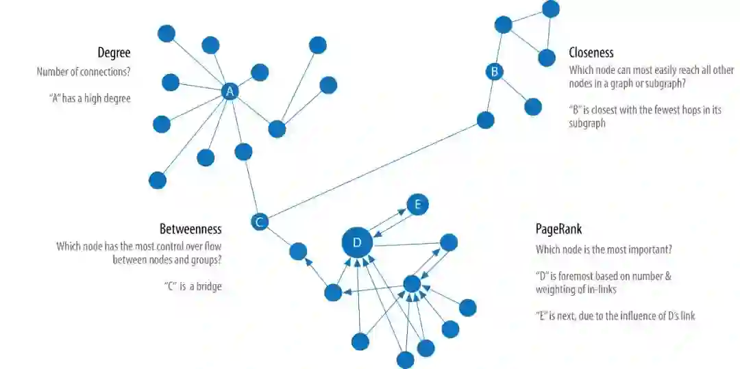 中心性算法(Centrality Algorithms)用于识别图中特定节点的角色及其对网络的影响。中心性算法能够帮助我们识别最重要的节点,帮助我们了解组动态,例如可信度、可访问性、事物传播的速度以及组与组之间的连接。尽管这些算法中有许多是为社会网络分析而发明的,但它们已经在许多行业和领域中得到了应用。