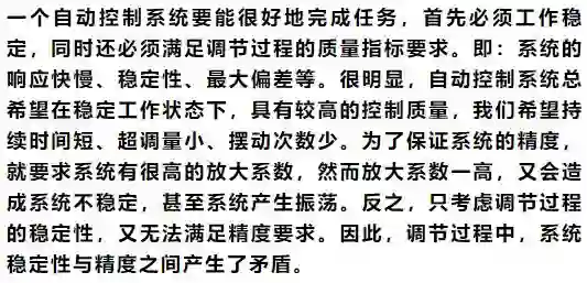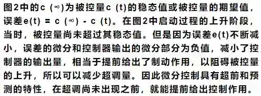 闭环控制系统的振荡甚至不稳定的根本原因在于有较大的滞后因素。因为微分项能预测误差变化的趋势,这种“超前”的作用可以抵消滞后因素的影响。适当的微分控制作用可以使超调量减小,增加系统的稳定性。