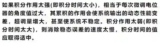 如果消除误差的速度较慢,可以适当减小积分时间,增强积分作用。