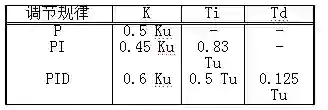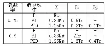 (3)利用Ks和Ts值,按表2给出的经验公式,计算出控制器的参数整定值。