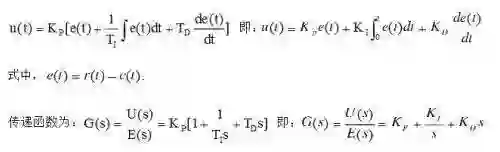 PID控制器的输入输出关系为: