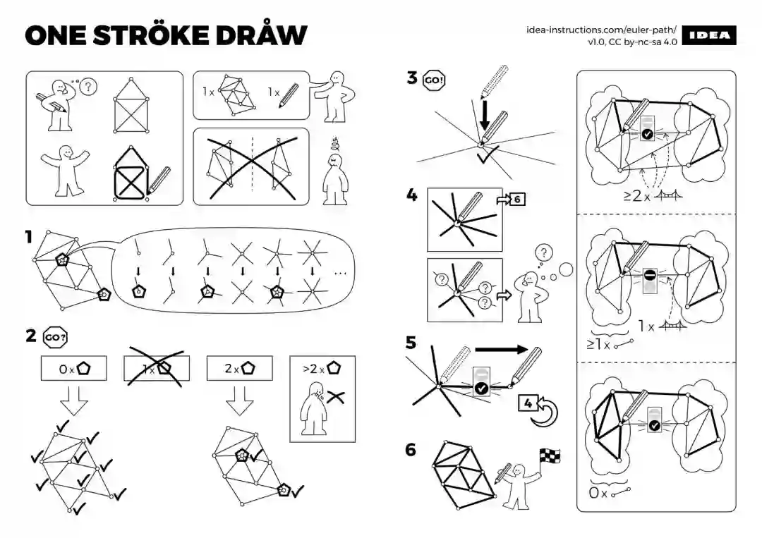 一笔画是一种 Fleury 算法,旨在优雅地找出图中的欧拉(Eulerian)路径。欧拉路径是图中的一条路径,刚好经过每条边,并且每条边只被访问一次。