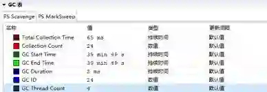 排除 CPU 之后,怀疑是不是内存有问题,导致频繁 GC 引起业务线程暂停。采集 GC 统计数据,示例如下:
