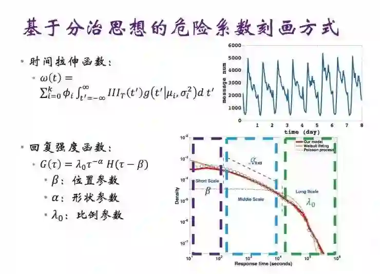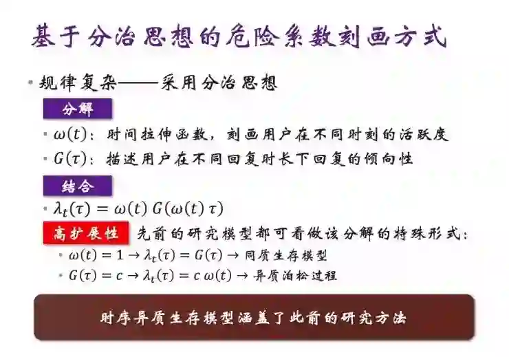 通常情况下,用户交互行为在自然时间和响应时间二个维度中的密度函数过于复杂,导致难以直接设计可被理解的危险函数。因此,我们利用了分治的思路以更好对危险函数进行建模: