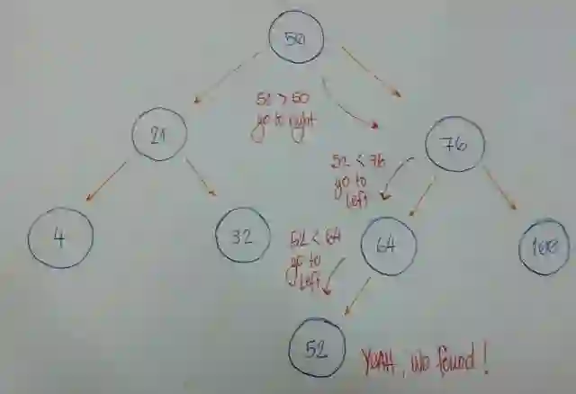 我们以根节点作为当前节点开始。给定值小于当前节点值吗?如果是,那么我将在左子树上查找它。