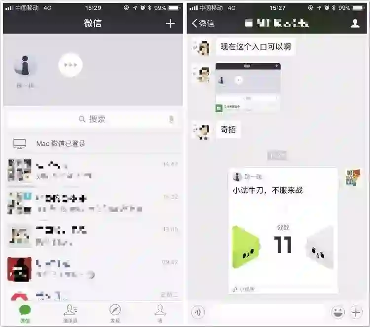 当年的微信 5.0 上线时,极客公园曾在微博上做过一个调查,「你最喜欢微信 5.0 哪个功能」,结果出乎意料的统一:打飞机。简单上瘾的操作,加上朋友间的刷分比拼,这个经典的飞机大战迅速成为全国最火爆的游戏。在微信首发的小游戏「跳一跳」上,我们又看到了对童年经典游戏的致敬,以及充满趣味的彩蛋。
