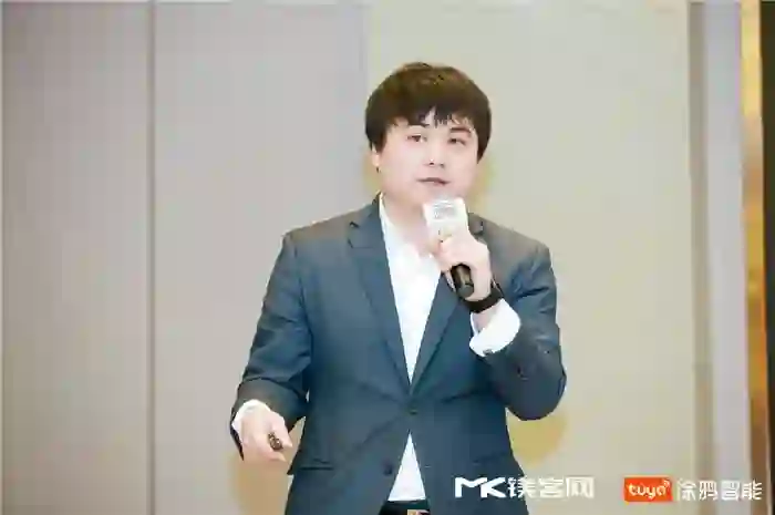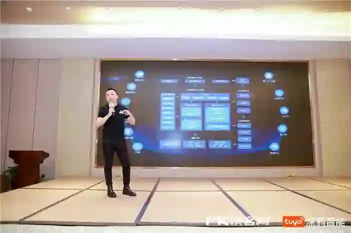 活动现场,涂鸦智能大市场&战略合作部市场经理任航波作为主办方代表上台对参会嘉宾表示感谢,并简单地向大家介绍了涂鸦智能的业务以及公司现状。