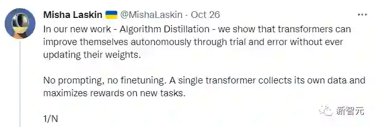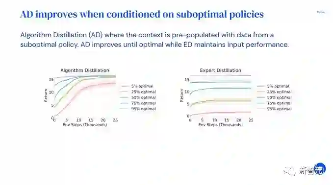 算法蒸馏的实验表明,Transformer可以通过试错自主改善模型,并且不用更新权重,无需提示、也无需微调。单个Transformer可以收集自己的数据,并在新任务上将奖励最大化。