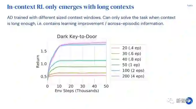 只有当Transformer的上下文足够长,跨越多个episode时,上下文RL才会出现。