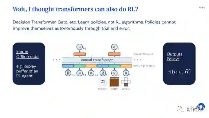 但Decision Transformers或者Gato只能从离线数据中学习策略,无法通过反复实验自动改进。