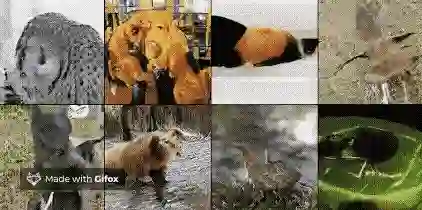 图注:在ImageNet上训练时,生成样本的演变过程。 生成网络是根据类别来生成的(如“灰猫头鹰”或“金毛猎犬”)。