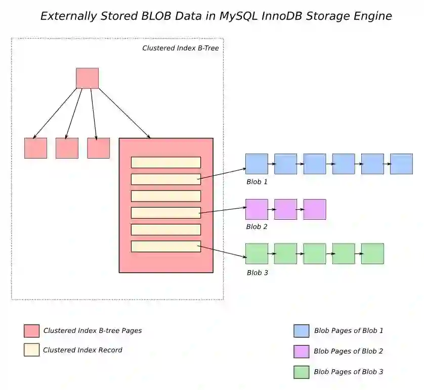 Postgres使用TOAST,这是一个专用的影子表(shadow table)存储。当行和列被选中时,大型对象就会被拉出。换句话说,大量的黑盒不会污染你宝贵的缓存。它还支持对TOAST对象的压缩。
