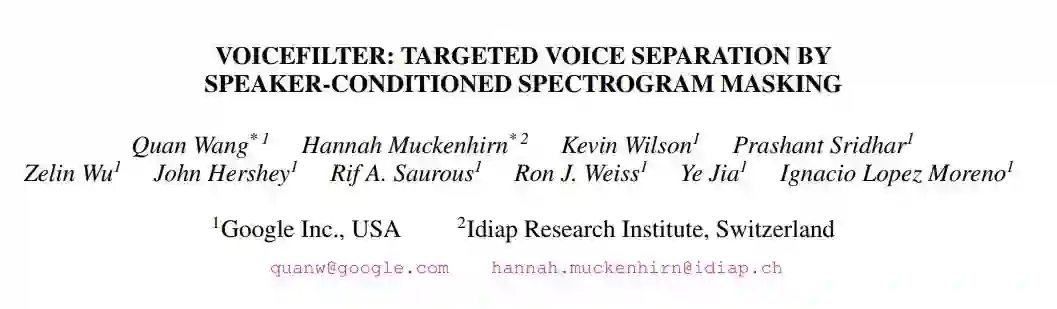 近日,谷歌科学家 Quan Wang 等在 arXiv 上发布了题名为 VoiceFilter: Targeted Voice Separation by Speaker-Conditioned Spectrogram Masking 的一篇论文,介绍了团队在人声分离领域的最新进展,利用声纹识别技术,实现定向人声分离。