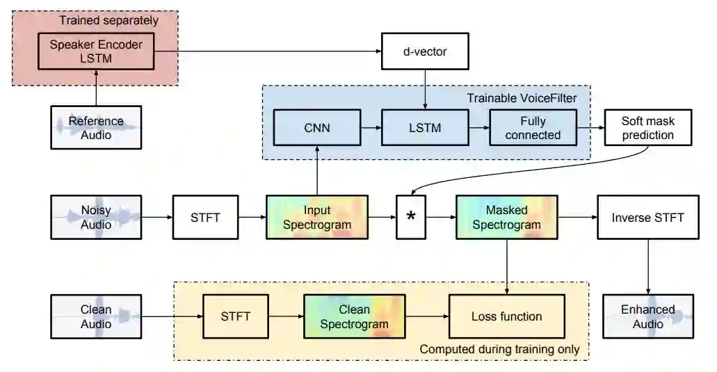 图 2:谷歌 VoiceFilter 的系统架构图。